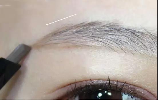 畫眉毛上沿的前半部分,下筆輕一些,線條則模糊一些。